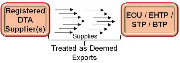 Refer to those transactions in which goods supplied do not leave country and payment for such supplies is received either in Indian rupees or in free foreign exchange. Following are supplies covered under Deemed Exports-